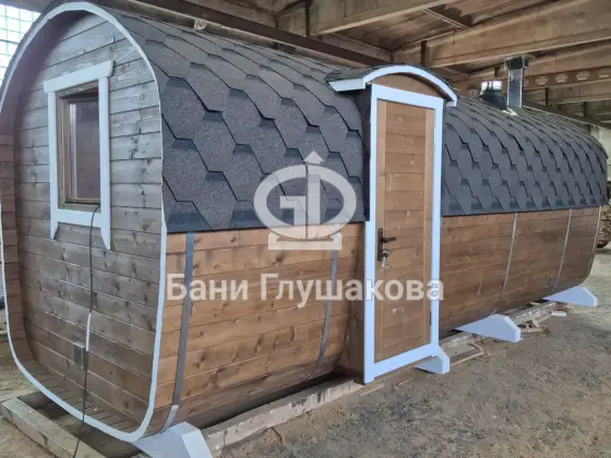 Гибрид «Кареты» и «Буханочки» из одного из лучших на рынке материалов – термированной бочковой доски, – и с утеплённым герметичным полом.