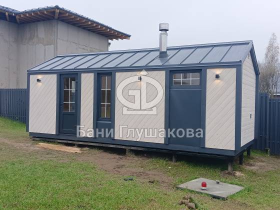 Эта баня — пример того, как современные формы и природные материалы создают гармонию. Настоящий барнхаус для души и отдыха, в котором каждая деталь продумана и имеет свой характер.