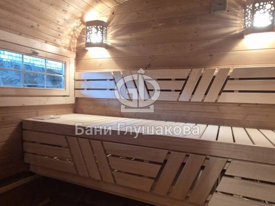 Эргономика парной. Внутри установлены широкие удобные полки и качественное оборудование, обеспечивающее мягкий и глубокий прогрев.