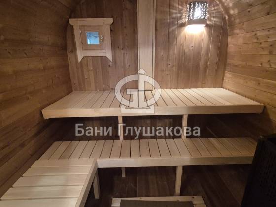 Продуманный интерьер. Внутри всё готово к парению — удобные многоуровневые полки, безопасное освещение и качественная отделка, которая пахнет настоящим лесом.