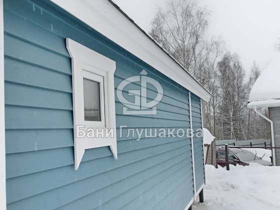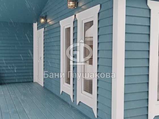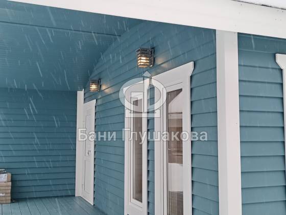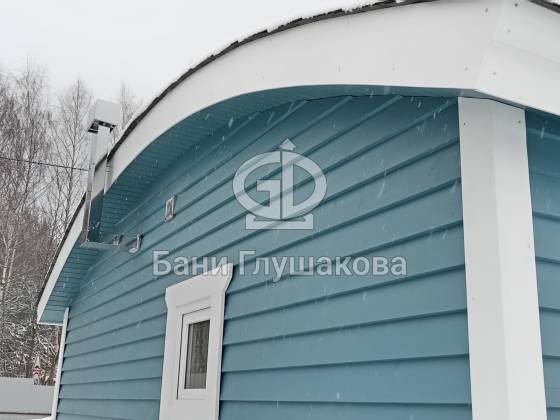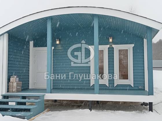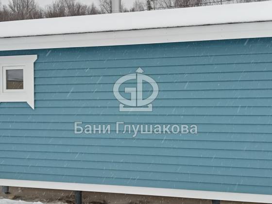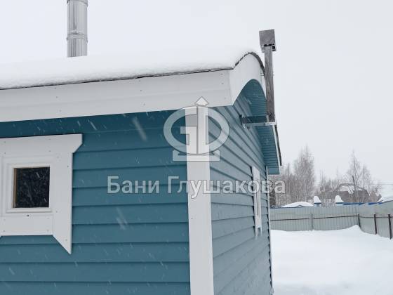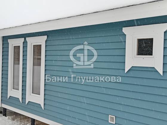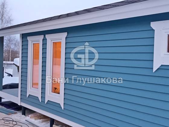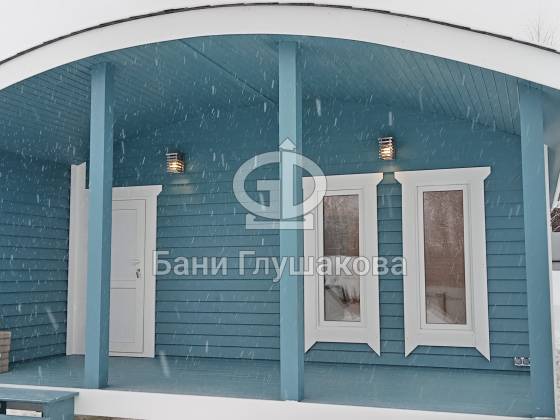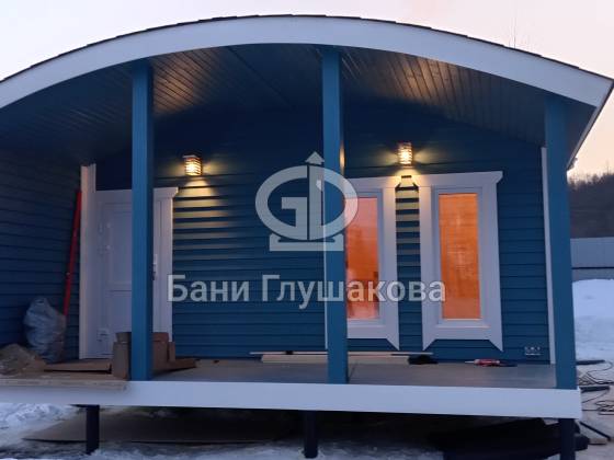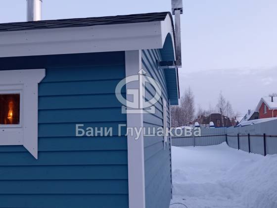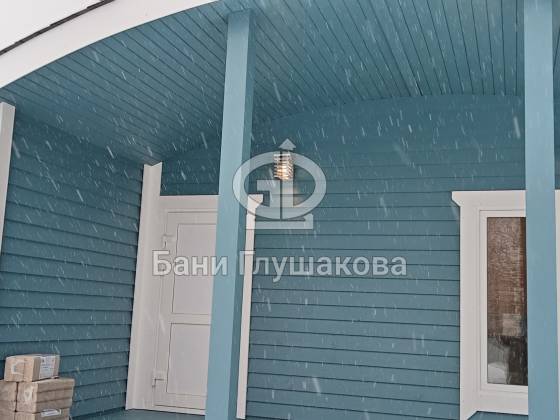 Синий цвет фасада — смелое и удачное решение. Он отлично контрастирует с зимним пейзажем и выделяет баню на фоне стандартных деревянных построек. Сейчас мы завершаем последние штрихи и готовим объект к сдаче владельцам.