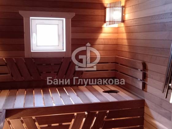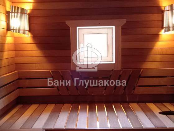 Внутренняя отделка. В парной использованы премиальные материалы: полоки и спинки сложной формы, современная система вентиляции и профессиональное освещение, создающее уютную атмосферу для парения.