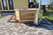 Чан укомплектован мощной наружной встроенной печью нашего производства. Печь ремонтопригодна! В случае неисправности её можно снять и отремонтировать или заменить, не разбирая купель.