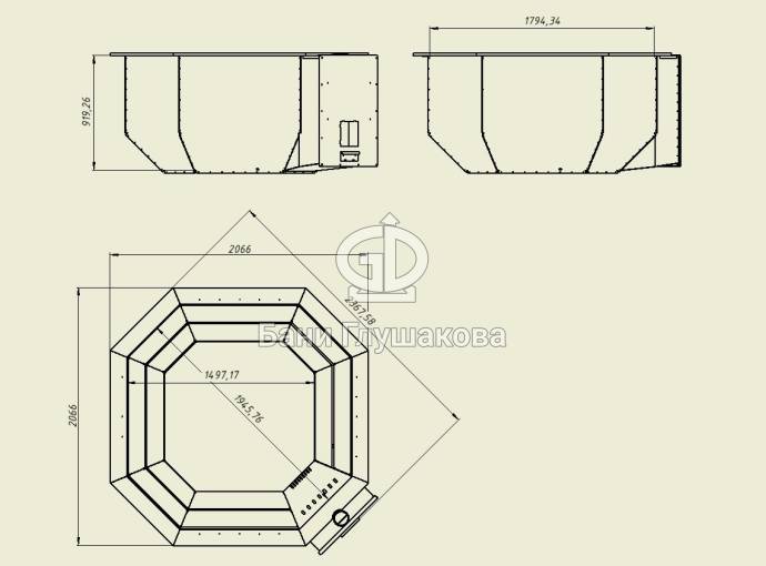 Банный чан 8 граней с подогревом со встроенной печью "Большой"