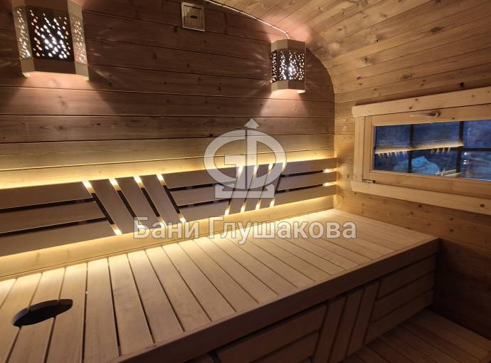Внутри есть комната отдыха, душевое помещение, парная. Всё сделано под ключ.