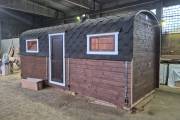 Размер универсальный – 2,4 на 6 метров, но на самом деле ограничений по размеру у бань такого типа нет – по запросу разработаем проект под ваши нужды.