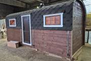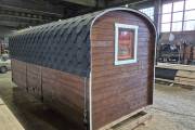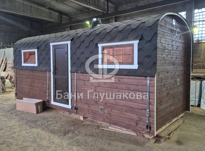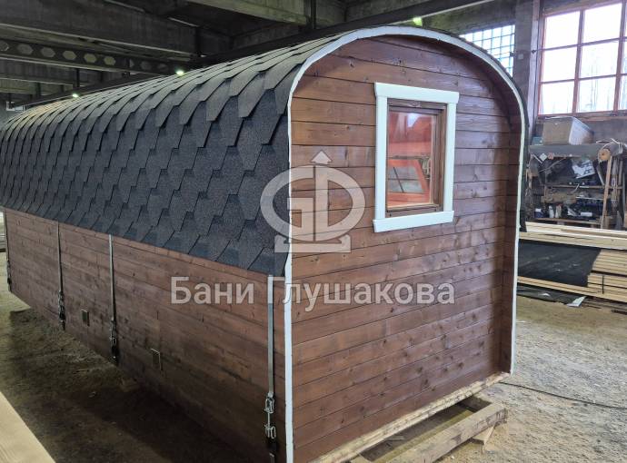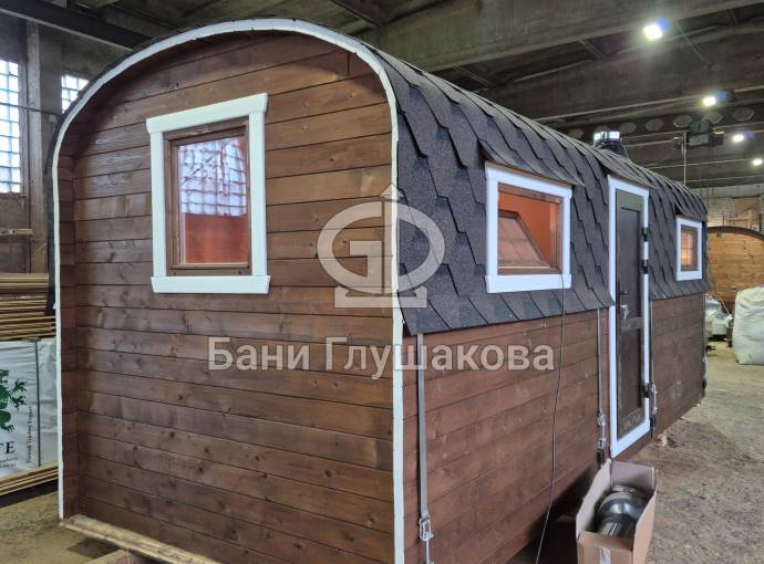 Вашему вниманию предлагаем новинку – перевозную баню «Буханочка» из бочковой термодоски. По сути это гибрид «Кареты» и «Буханочки».