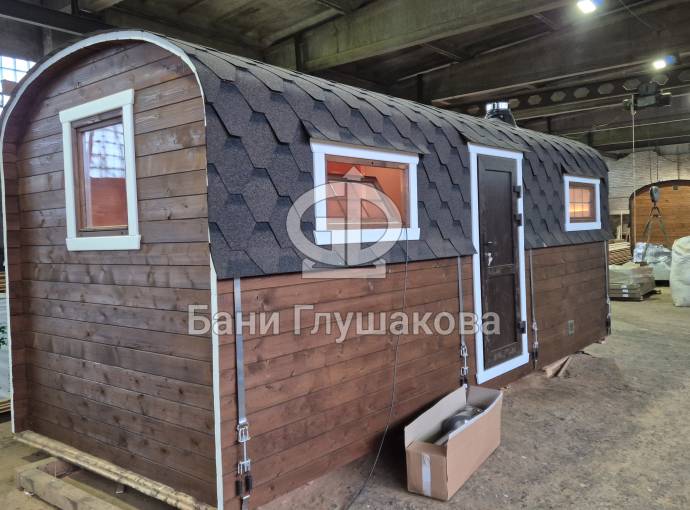 Баня изготовлена 10 декабря 2025 года, находится на выставке в Санкт-Петербурге и доступна для покупки.