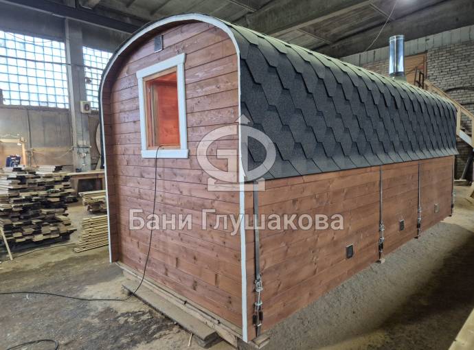 Баня «Буханочка» из бочковой термодоски размером 4х5 метров — это компактное, но полностью функциональное решение для тех, кто ценит практичность, стиль и уют. Модель объединяет все основные помещения, необходимые для комфортного отдыха, при этом занимает минимум места на участке.