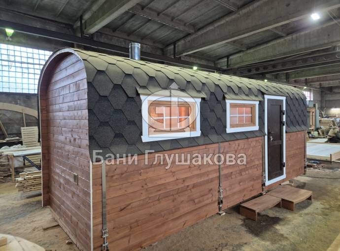 Несмотря на небольшие размеры, баня сохраняет все преимущества линейки: лёгкую конструкцию, современный внешний вид с плавными формами и долговечность термодревесины. Благодаря утеплённому полу и качественным материалам, баня подходит для использования в течение всего года.
