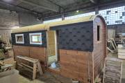 Мы запустили в производство экспериментальный проект — новую перевозную баню, в которой соединили лучшие решения сразу двух популярных моделей.