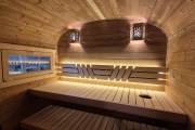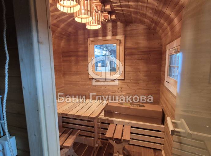 • Материал корпуса: Баня изготовлена из термированной бочковой доски. Применение термодерева гарантирует стабильность геометрии конструкции, устойчивость к гниению и вредителям, а также придает древесине благородный оттенок и приятный аромат.