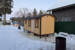 Это классическая шестиметровая баня с красивой округлой крышей. Внутри 3 помещения: комната отдыха, парная и отдельная душевая кабина с автономной системой. При этом бойлер, бак и насос вынесены в «закуток» рядом с топкой: так мы экономим место в небольшой баньке и обеспечиваем комфортное использование душа.