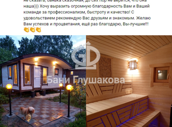 * Внимание! В характеристиках и опциях указана нестандартная комплектация бани. Вы можете заказать повтор или выбрать доп.опции для формирования собственной комплектации.