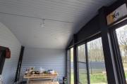 Особенность этой версии — застеклённая терраса, которая превращается в идеальное место для отдыха в любое время года. Благодаря панорамному окну здесь много света и воздуха — летом это почти веранда, а зимой тёплое продолжение дома.