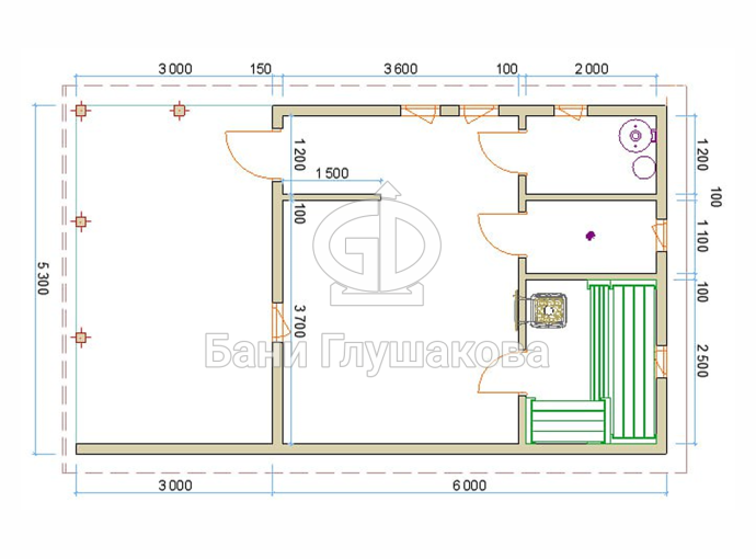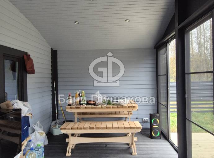 Баня «Бурже» с застеклённой террасой 9 на 5,3