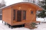 Мы добавили в возможности отделки наших каркасных бань «Бурже» и «Буханочка» уникальный элемент — Лунную террасу. Её главная особенность в изящных арочных выемках по бокам, которые создают футуристичный и при этом очень уютный силуэт.