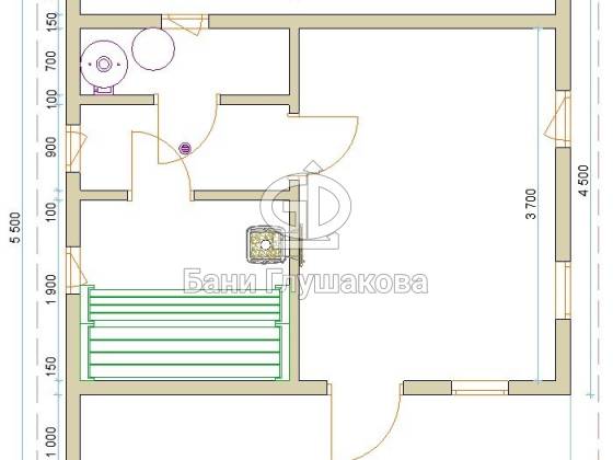 Каркасная баня «Бурже» без террасы 3,5х5,3м