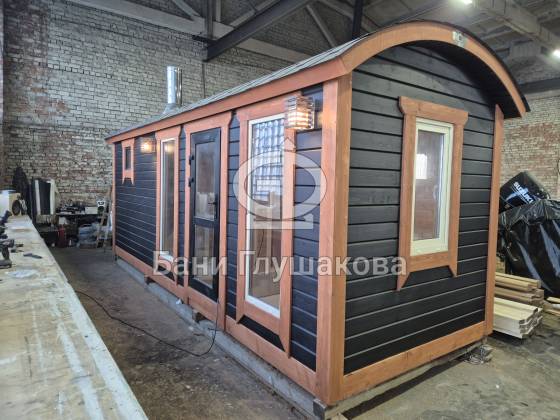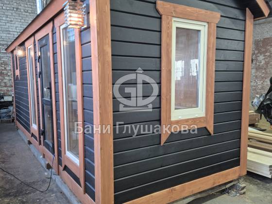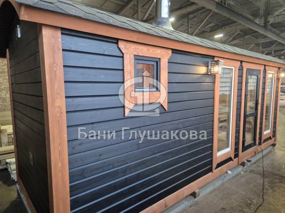 Смелые дизайнерские решения в сочетании с дорогими материалами дают отличный результат. ТАКИЕ готовые бани в комплектации «полный фарш» строим только мы.